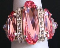 Un montage rapide, pour une bague de bel effet. Anneau en double rang de petites facettes rose clair Ab.